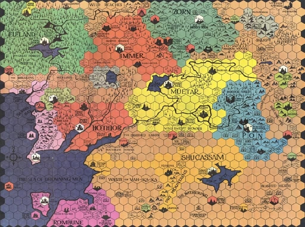 Voici un wargame sur plateau classique, publié quelques années après le D&D original, par le même éditeur, mais est maintenant réimprimé dans une version de bien meilleure qualité. Il se présente comme « une œuvre de littérature de fantasy » qui est entièrement jouable, et cette présentation n’est pas fausse.