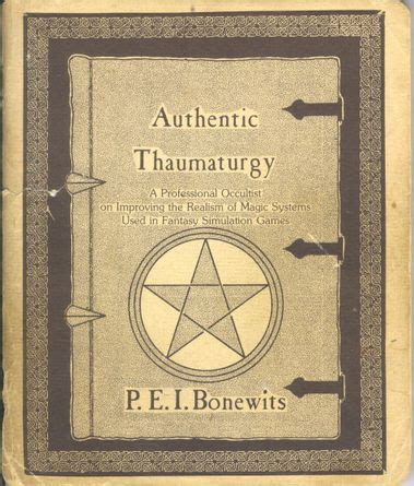 Publié pour la première fois en 1978 (puis corrigé et augmenté 20 ans plus tard [Par Steve Jackson Games, en 1998, puis 2005 : lien (en) (NdT)]), Authentic Thaumaturgy wiki (en) fut écrit par Isaac Bonewits wiki (en) et publié par Chaosium grog. Son sous-titre provocateur annonçait les « Conseils d’un occultiste professionnel pour améliorer le réalisme des systèmes de magie des jeux de rôles fantastiques ».